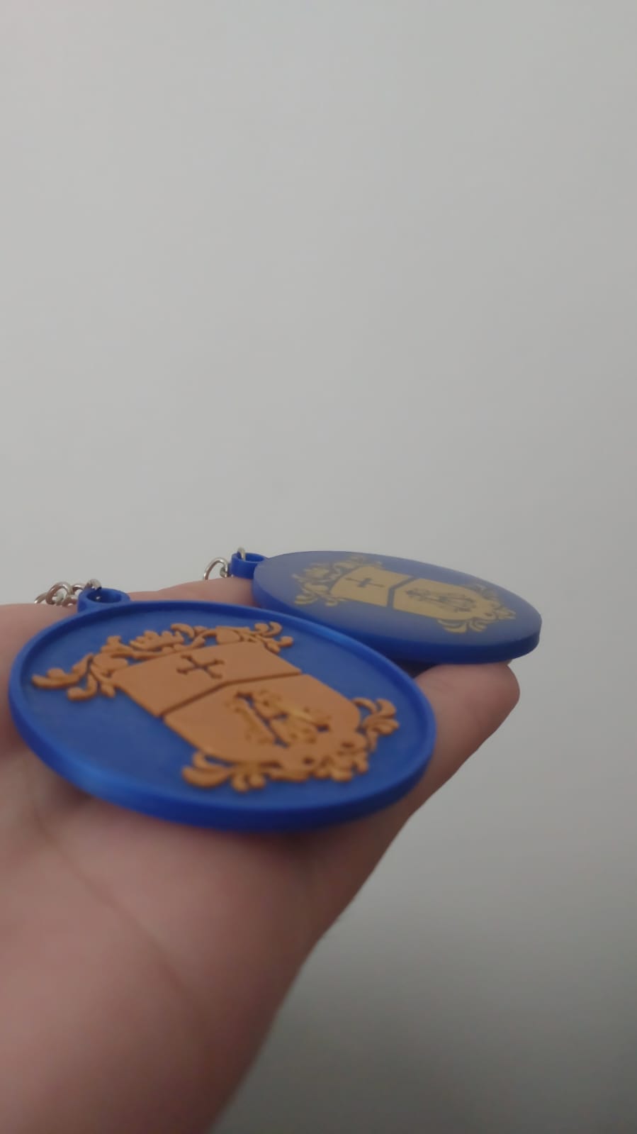 Exemplo.: Fundo com a cor azul, imagem de nossa senhora das graças na cor dourado